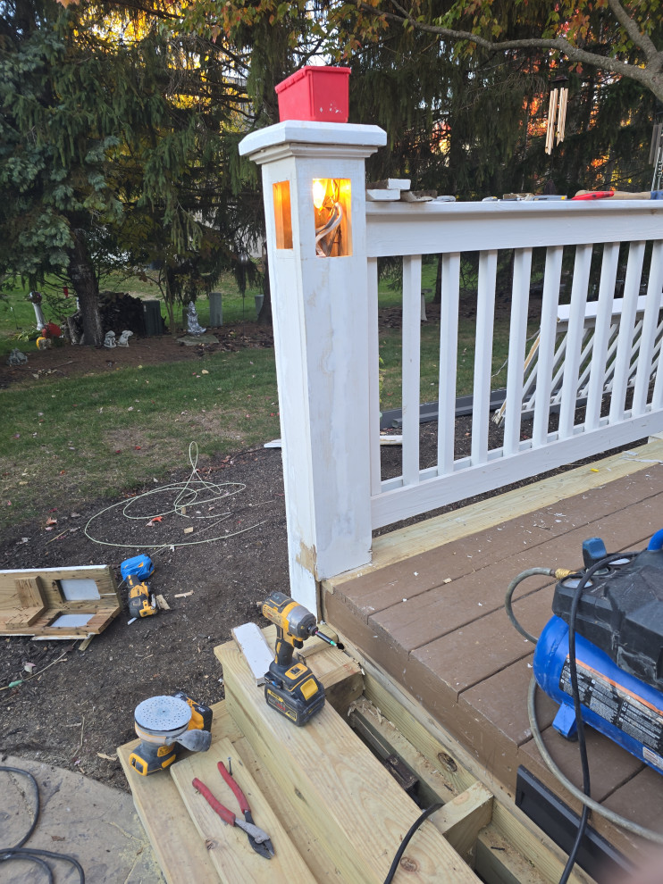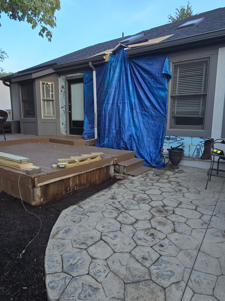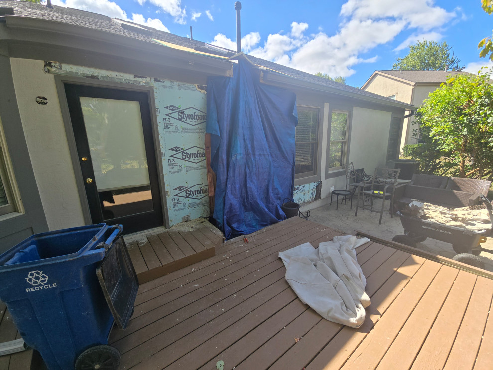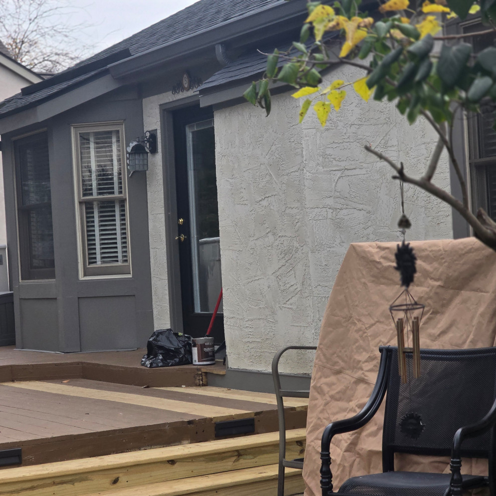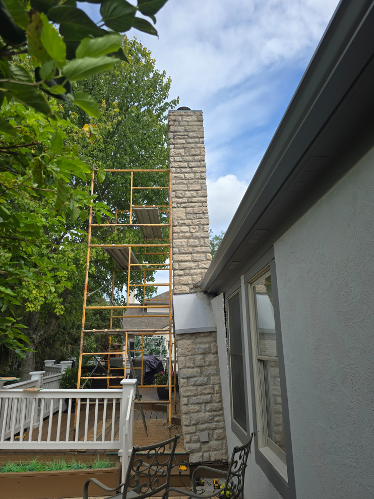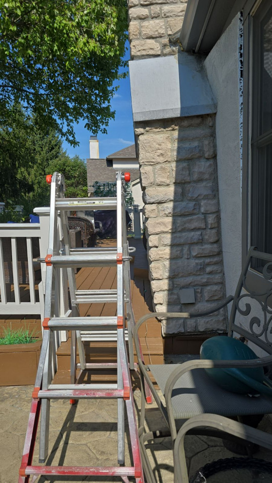 client called for stucco repair... the entire chimney was gonna fall off the house... we changed uo the deck slightly and added plywood to the back wall and made all required repairs to the structure..