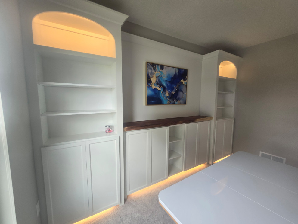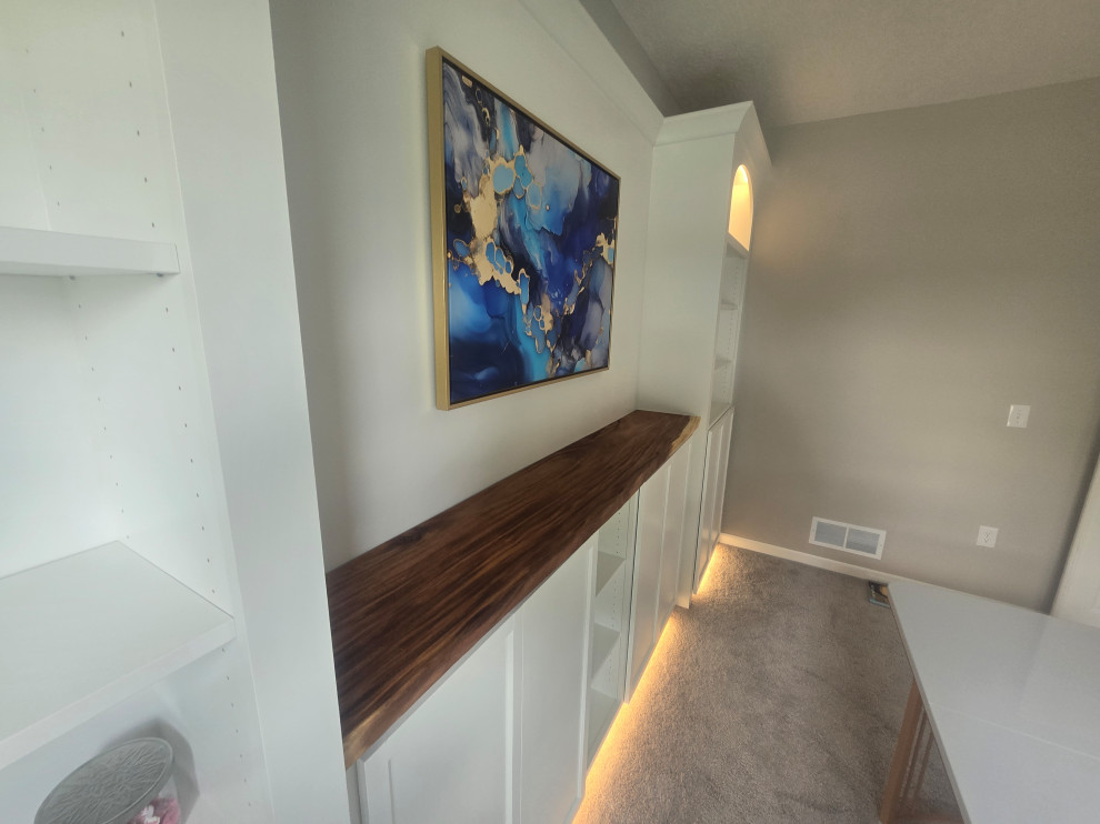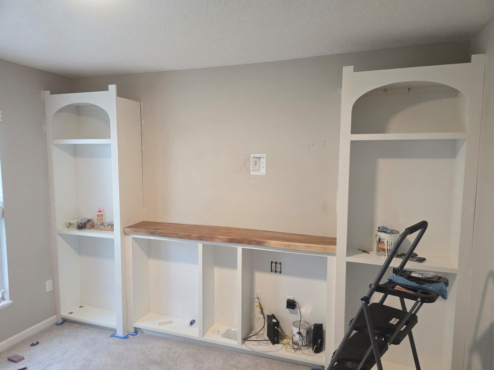 customer bought some Billy box's from ikea and wanted a custom built-in.. we made some design changes and ideas and came up with this... we sourced a 2.5" teak slab for the top.. put in the appropriate requirements to hang a TV on the wall in the future